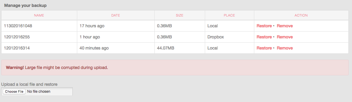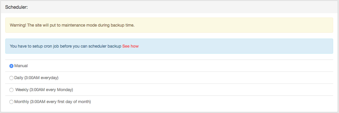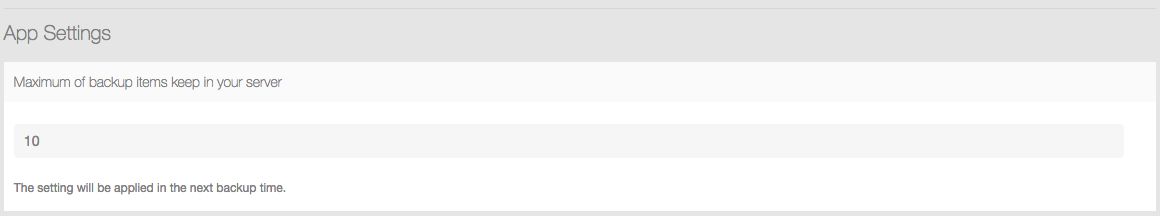 | 1 | Maximum of backup items keep in your server | The setting will be applied in the next backup time. |