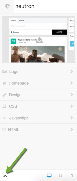 - Once you've opened the theme edit screen, click the lower left arrow to open the theme options: