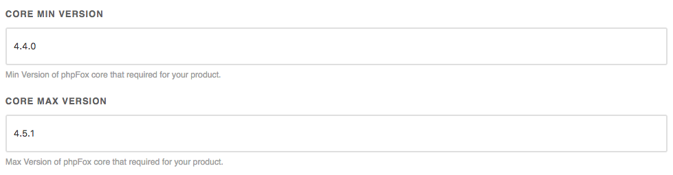 • Provide min and max version of phpFox that compatible with your product: