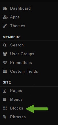 - Type - PHP Block, PHP Code or HTML Code. A PHP Block is one that is already made as a coded block that you loaded or added to your site's files on the server. PHP Code and HTML Code Blocks are blocks you will add code to right within the coding area.