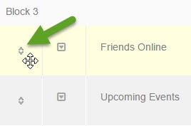 - Click the drag symbol to the left of the block name and drag it up or down. You will see a spinning icon in the bottom right once you finish moving the block. That shows it is saving the position.