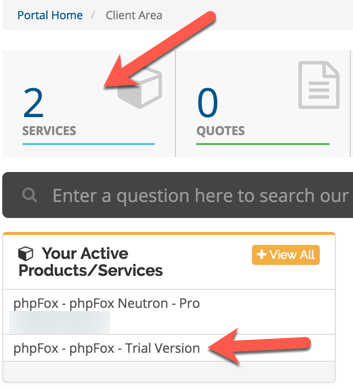 - Once you are in your account, you will see two ways to get to the download, the "Services" block and the "Your Active Services/Products" block: