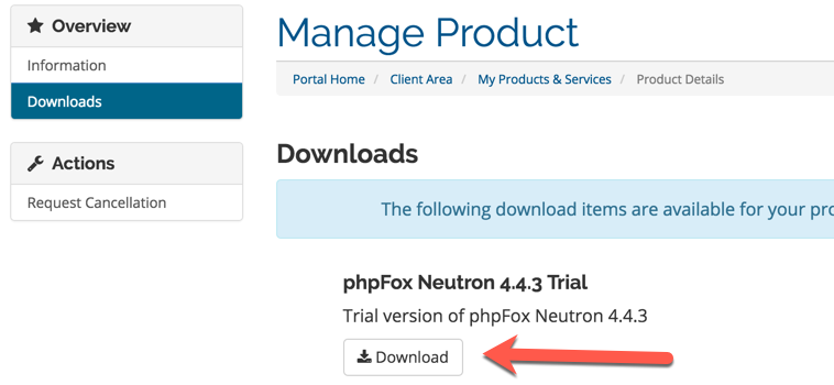 - Click the Trial Version license in order to see the download link.