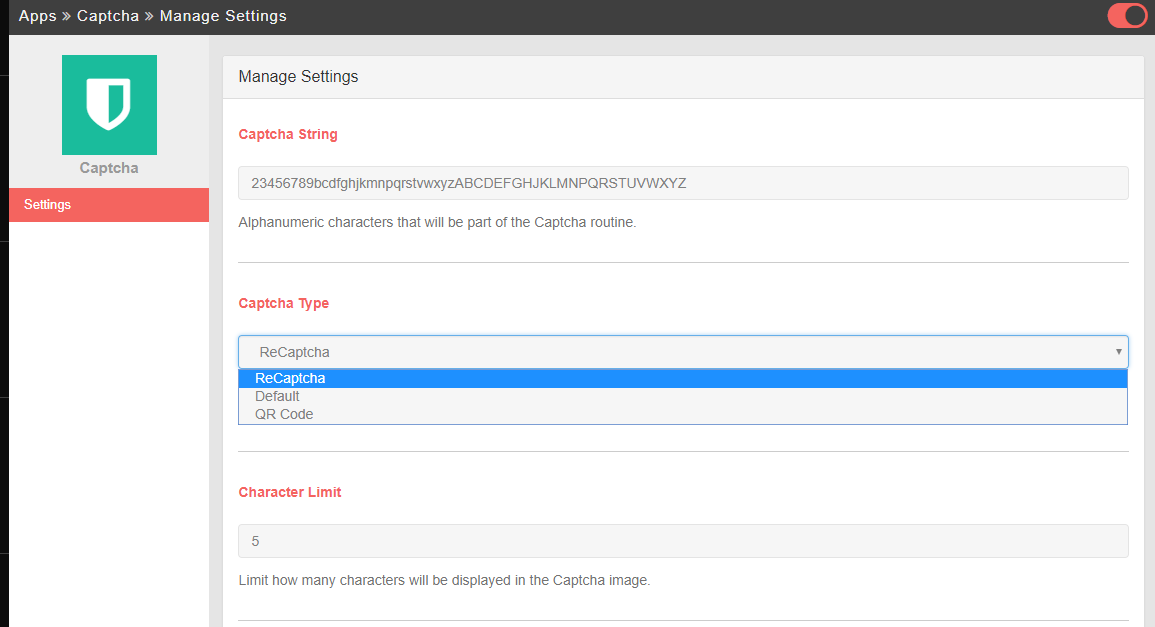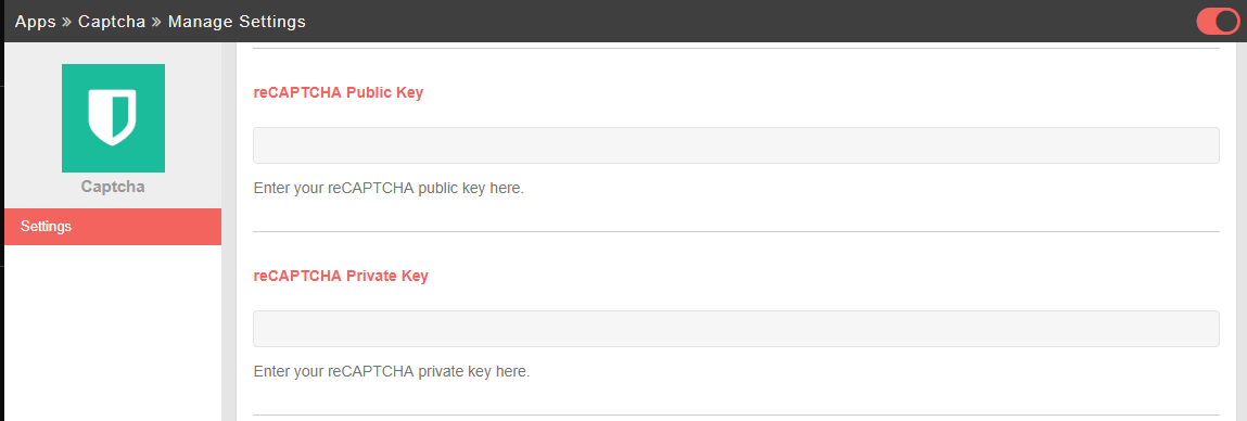 • Go back to AdminCP >> Apps >> Captcha >> Paste the reCaptcha Key here