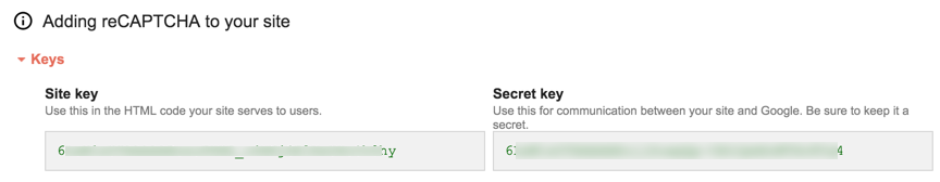 Once you've Registered it, you'll get the Site Key and Secret Key. Copy those as you'll need them for the next step.