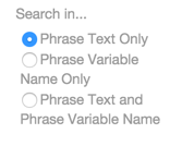 - Below the input box are some selections for where to search. We can choose: Phrase Text Only, Phrase Variable Name Only, Phrase Text and Phrase Variable Name. Choose Phrase Text Only.