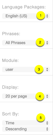 - Below that is View More Search Options. Click that to open advanced search options. Choose English for the language package, All Phrases, Module choose User, for the rest of the options, choose what you want for this tutorial.