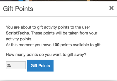 - A popup will show that lets you input the amount of your points you want to give to your friend. Be sure to click Gift Points to send it.
