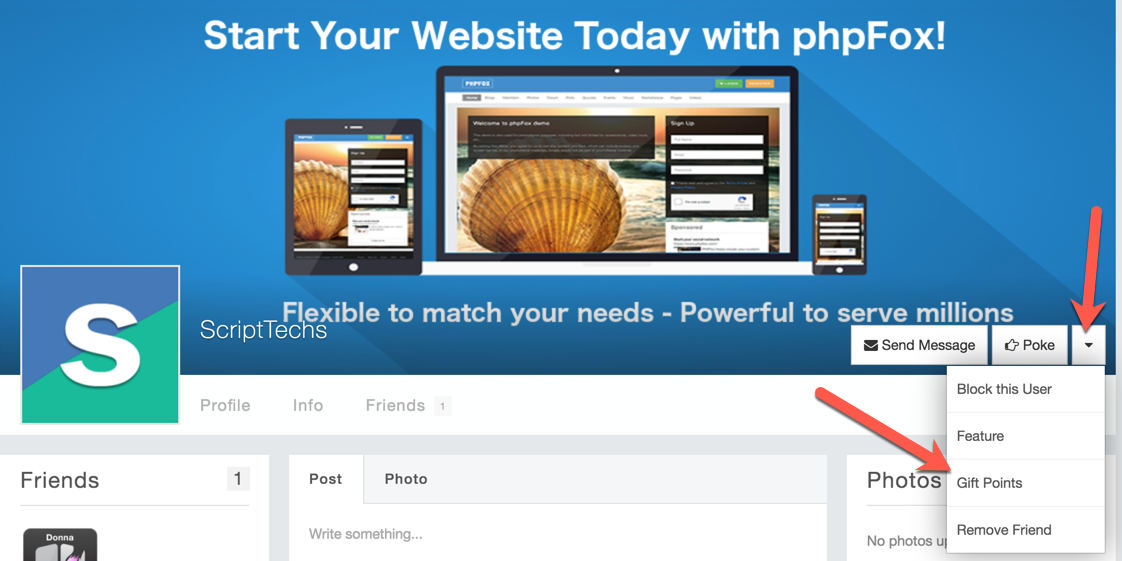 This front end guide will show how your users can gift their points to their friends. You can copy it to your site but please change the words so Google doesn't penalize you for duplicate content. This also assumes that the setting to allow gifting points is enabled in the user group settings.