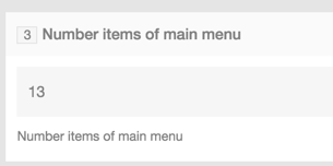 - Find the setting Number items of the main menu and change the number to be the number of menus you want to show on the menu.