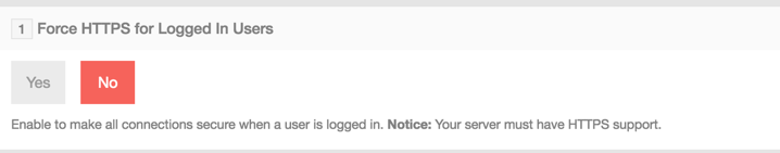 - Set the setting Force HTTPS for Logged In Users to Yes to enable it.