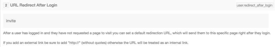 - Scroll down to URL Redirect After Login and enter the URL. For our example, we show redirecting to the invite page, encouraging users to invite their friends: