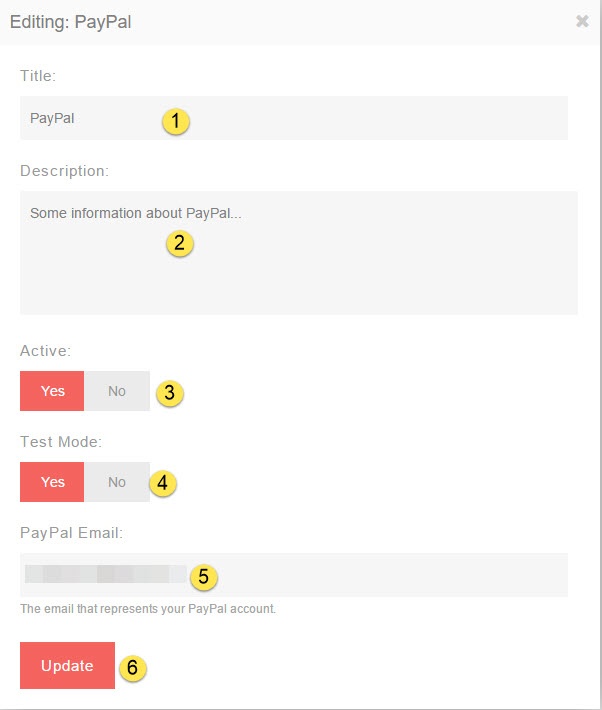 4. Test Mode: Set to Yes to test the gateway (by purchasing stuff in the front end to see how the payments are working). Set to No to have it a live gateway.