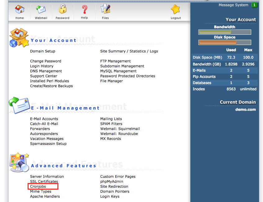 - Step 1: Log into the DirectAdmin control panel main page, go to the ‘Cronjobs’ page.