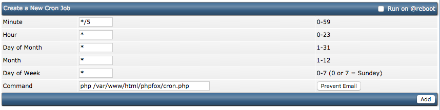 - Step 3: Click on "Add" button to add the phpFox cron job.