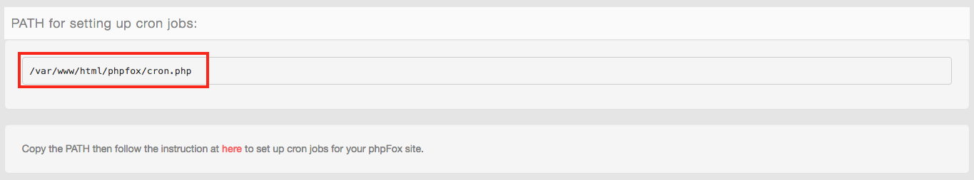 The first step to set up new cron jobs system is getting the path of cron file of your phpFox site. Log into AdminCP, go to Setting → Cron and copy the PATH. The PATH is something like that "<path_to_phpfox_root_dir>/cron.php".