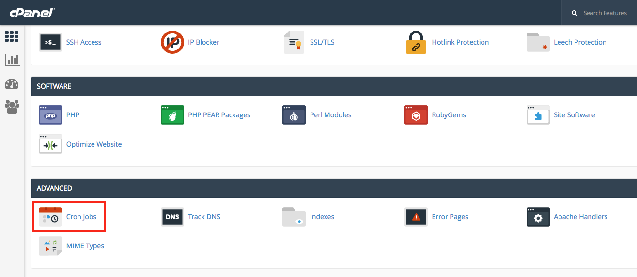 - Step 1: To access the Cron Jobs Menu, click on the corresponding icon located on the main screen of your cPanel interface.