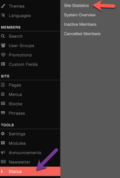 - Go to Status and select Site Statistics
