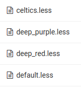 Go to asset/skins, you will see there several LESS files. In this example of Material template, we have following LESS files: