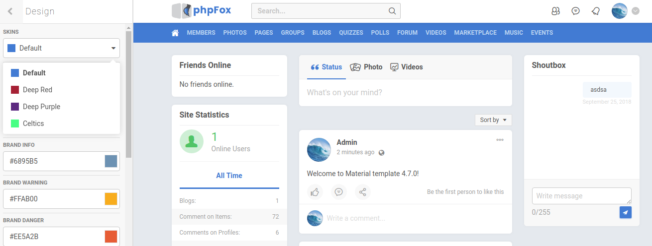 As a new feature on phpFox 4.7.0, template developers now can design multiple skins for template with Template Skin feature.