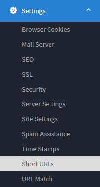 - Click Settings >> Short URLs