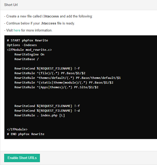 - Once you click that, you'll see instructions for enabling short URLs.
