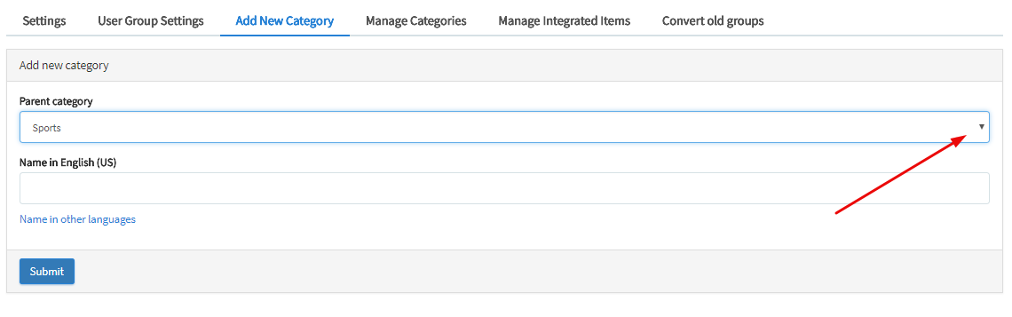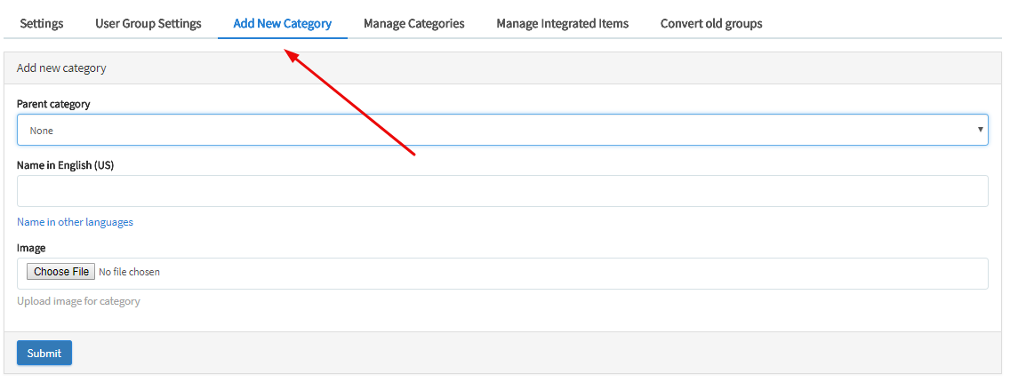 • Choose a parent category if this is a subcategory or leave that as it is. Add a name for your category and submit.