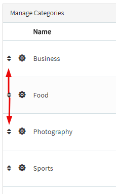 • To the far left of the category name, you will see up/down arrows. You would use those to drag and drop the category where you want it.