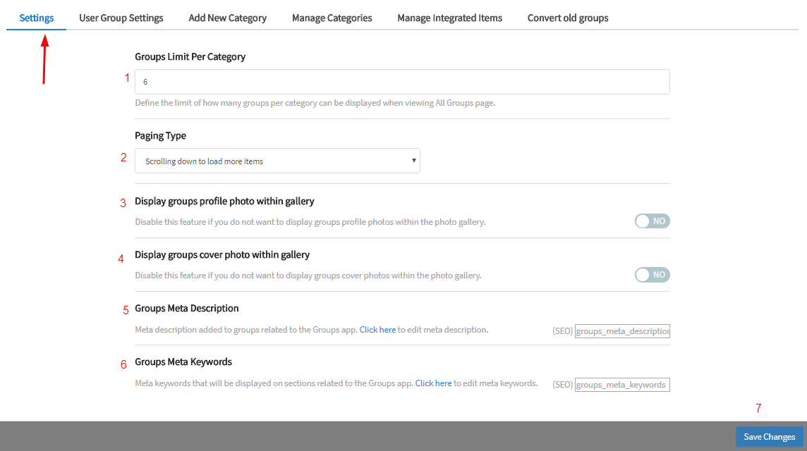 1. Groups Limit Per Category: Define the limit of how many groups per category can be displayed when viewing All Groups page.