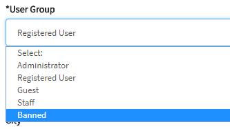 You will now see a lot of options for this user and you can change anything in this edit screen. However, this tutorial will just deal with moving the user. Scroll down until you see the selection for User Group and click to open the drop-down selection: