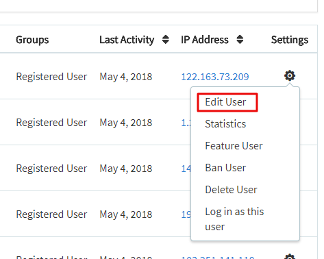 First, we need to find the user to edit. Go to Members >> Browse Users. Once you have the user you want to move, click to the left of that user and select Edit User.