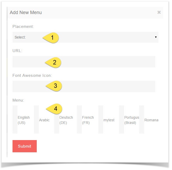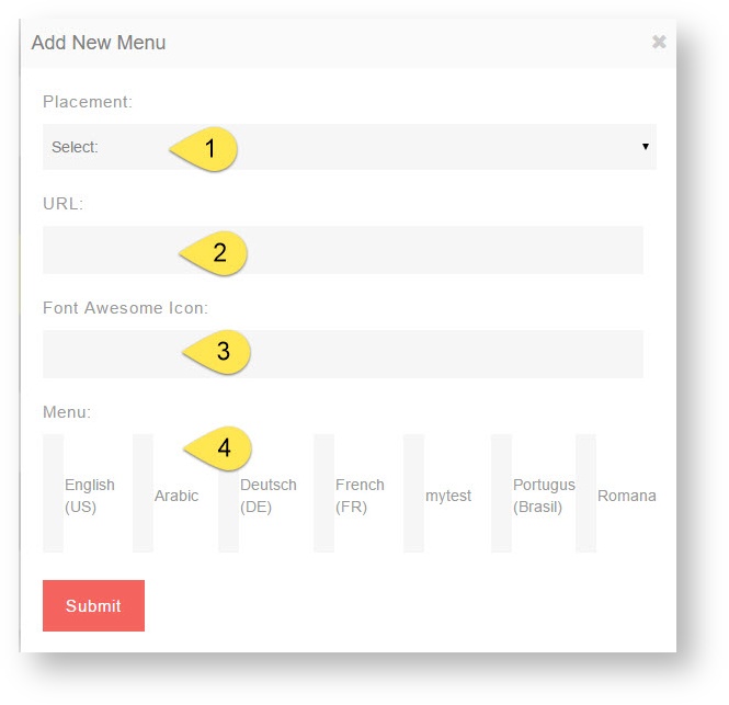 - If you want this menu to have an icon (for themes that offer this), enter the font awesome icon . For example, if we want a Book icon we would enter fa-calendar here.