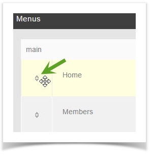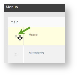 - Click the drag symbol to the left of the menu name and drag it up or down. You will see a spinning icon in the bottom right once you finish moving the menu. That shows it is saving the position.