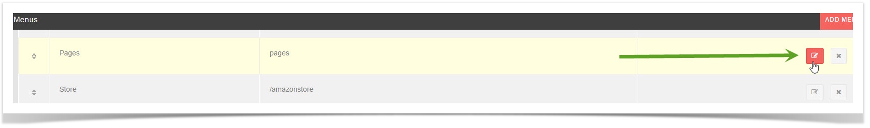 - Click the Edit icon to the far right of the menu.