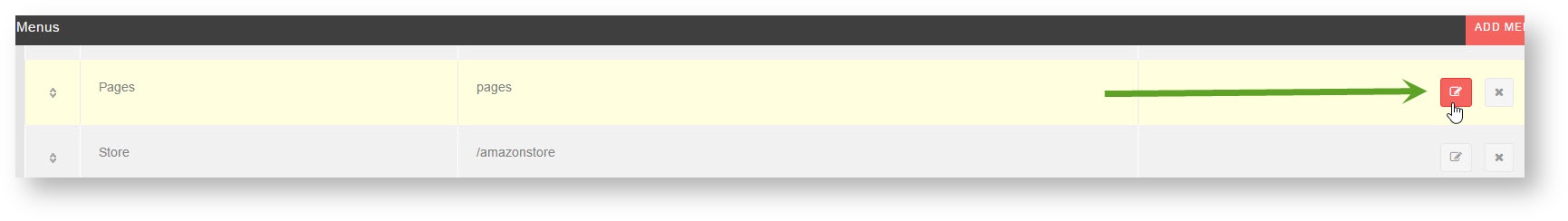 - Click Add Menu in the top right of the screen