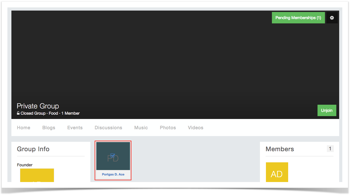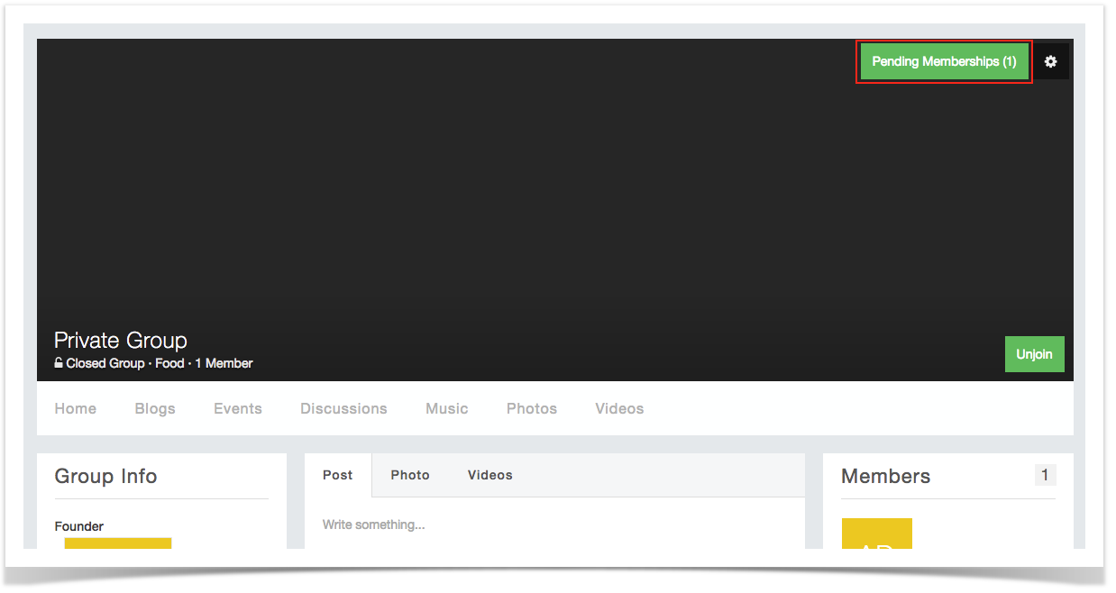 Step 1: Go to the Group Detail Page, you can see the Pending Memberships button.