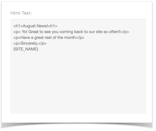 - HTML - add the html HTML for your newsletter.