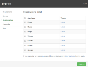 Then you will select phpFox apps that you want to install on new site. (this step is required from version 4.6.0)