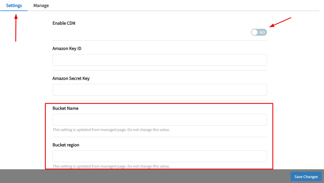 Next go back to Settings, you will see all the fields are filled with the proper information for you. Please do not change values in Bucket Region & Bucket Name.