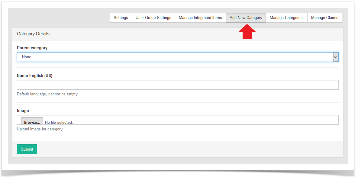 - Choose Add New Category