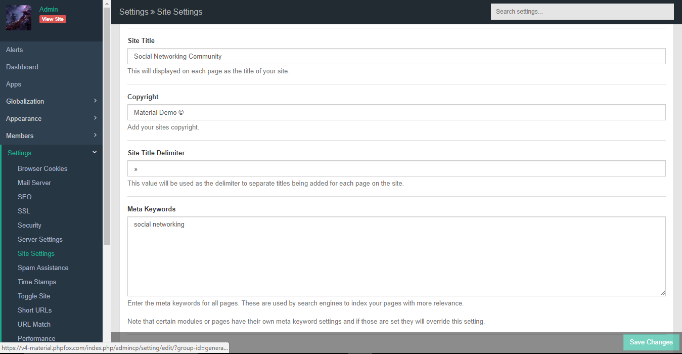 - After modifying settings, click on Save Changes button at the bottom of the page to save your changes