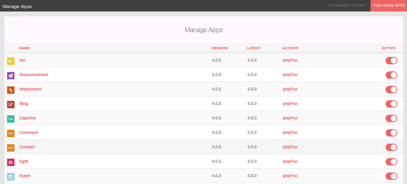 | 3 | New Apps Manage Page in AdminCP |