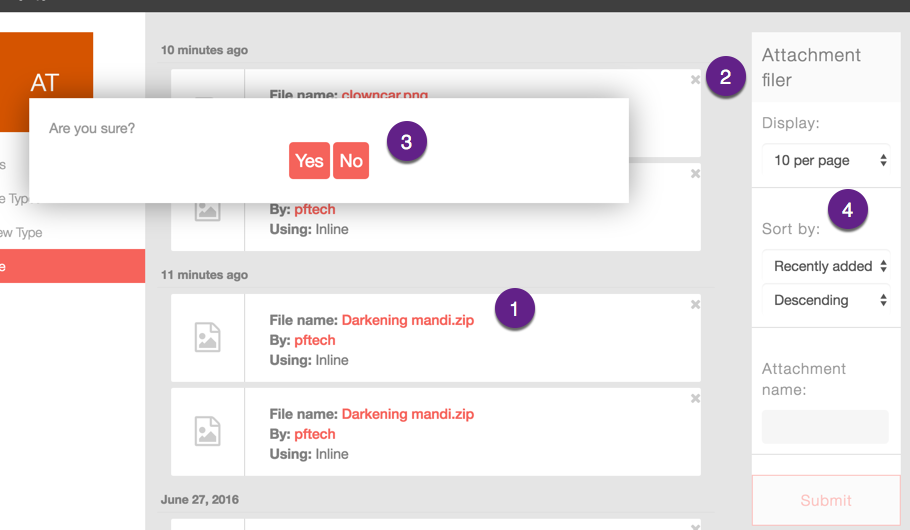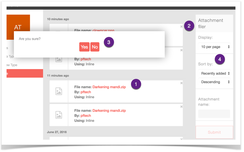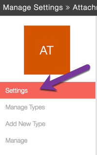 - When in the Attachments Settings page, click Manage.Go to Manage tab. You can search for specific attachment name.
