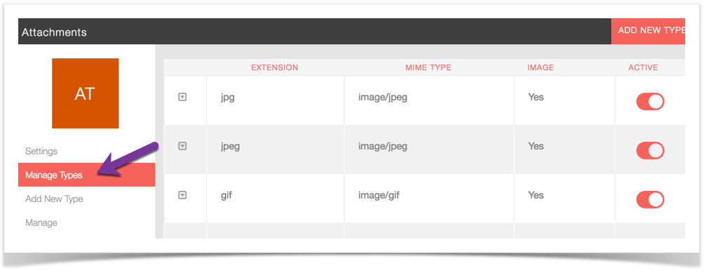 - Go to Attachment app in AdminCP > Apps >> Installed >> Attachment. Go to Add New Type Tab
