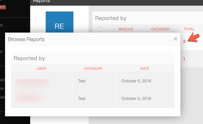 If you click the Total number, a popup will show you all of the users that reported the item and the dates.